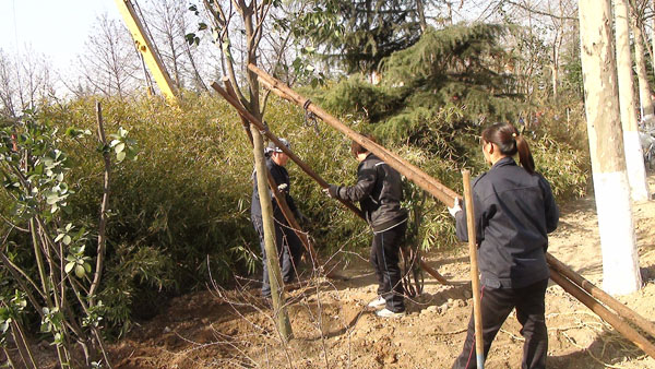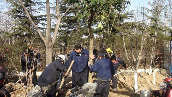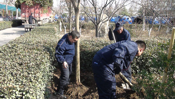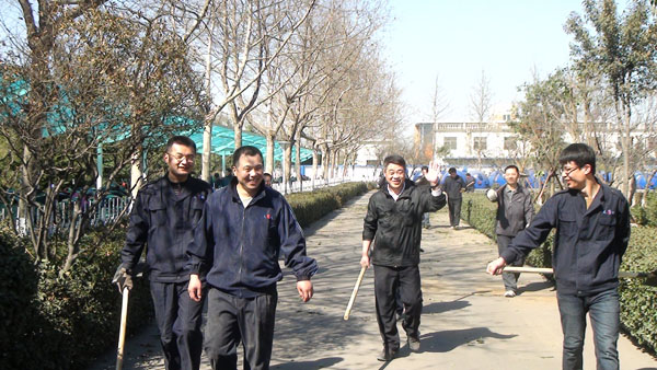 每年一度的“3月12日植樹節(jié)”在山東淄博太極搪玻璃設備公司年年都過。由于全國各地廣大用戶對太極搪玻璃反應釜等搪玻璃設備的需求越來越大,所以生產進度絕對不能耽誤,車間工人這天都會緊鑼密鼓的努力生產工作,所以植樹種花美化太極家園的任務則由公司辦公后勤人員來完成,在領導的分工安排下,吊卸組、修剪組、轉運組、挖坑組、種植組、支架組、澆灌組等分工明確、井然有序大家一同努力來把太極家園美化。