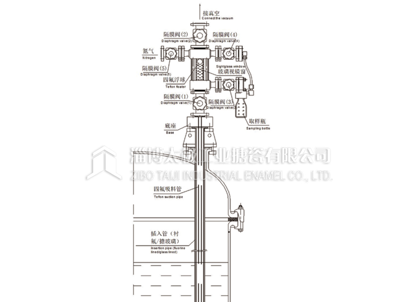 太極反應(yīng)釜手動(dòng)取樣系統(tǒng)(MANUAL SAMPLING SYSTEM FOR REACTORS)為防腐手動(dòng)取樣裝置。取樣物料接觸各部件均采用里襯PFA、襯氟材質(zhì),達(dá)到防腐目的;四氟吸料管配套插入管(襯氟/搪玻璃材質(zhì))浸于釜內(nèi)料液以下,增加其過(guò)程的穩(wěn)定性。通過(guò)抽真空將物料在系統(tǒng)中安全、快捷取樣。