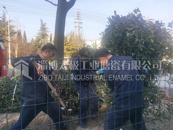 15053366601“一年之計在于春”,2022年2月4日(立春)上午8點開始,淄博太極工業(yè)搪瓷有限公司的辦公后勤人員齊上陣,種下一顆顆樹苗,把太極新廠區(qū)進(jìn)行全面綠化。